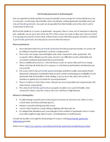 Pros and Cons of Pet Friendly Apartments PowerPoint PPT Presentation