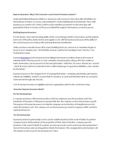 1Keyman Insurance Why is this insurance a must