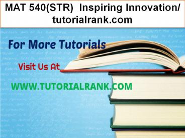 Title: MAT 540(STR) Inspiring Innovation- tutorialrank.com