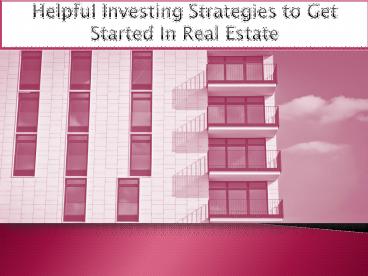 Helpful Investing Strategies to Get Started In Real Estate PowerPoint PPT Presentation