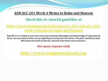 ACC 201 Week 4 Memo to Baku and Hanson PowerPoint PPT Presentation