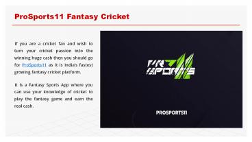 ProSports11 Fantasy Cricket PowerPoint PPT Presentation