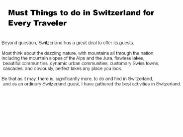 1Must Things to do in Switzerland for Every