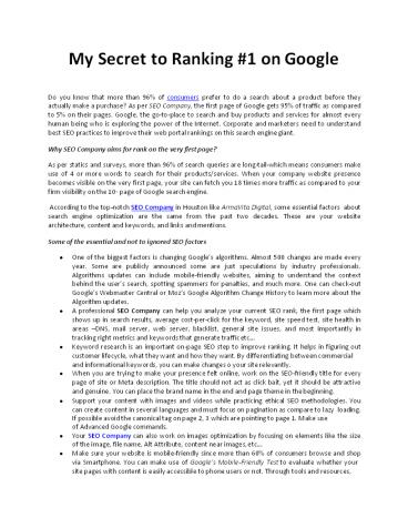 My Secret to Ranking #1 on Google PowerPoint PPT Presentation