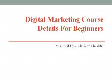 Digital Marketing Course Details For Beginners PowerPoint PPT Presentation