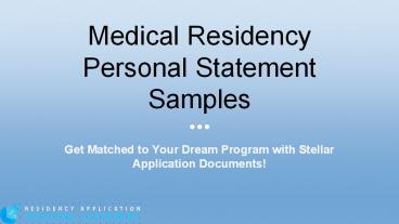 Medical Residency Personal Statement Samples PowerPoint PPT Presentation