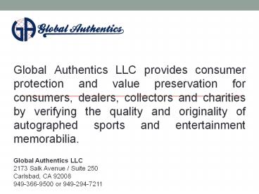 Global Authentics LLC is the only autograph