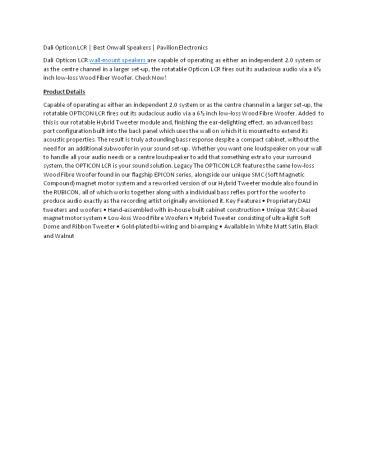 Dali Opticon LCR | Best Onwall Speakers | Pavilion Electronics PowerPoint PPT Presentation