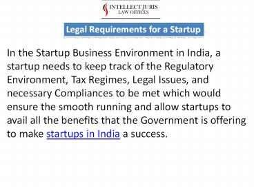 Legal Requirements for a Startup-Intellect juris PowerPoint PPT Presentation
