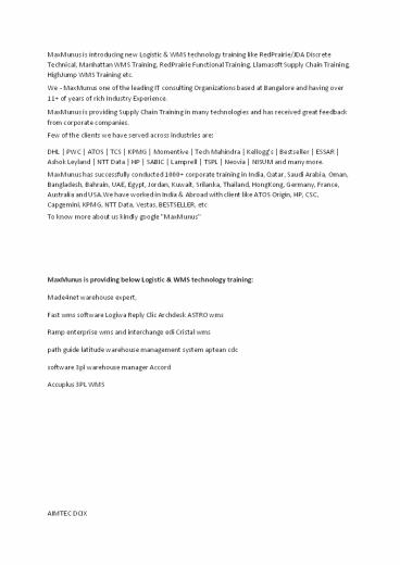 Title: Logistic & WMS Training by Industry Leading Experts.