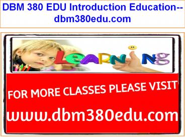 Title: DBM 380 EDU Introduction Education--dbm380edu.com