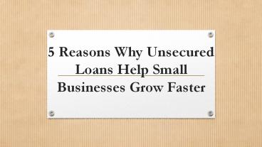 5 Reasons Why Unsecured Loans Help Small Businesses PowerPoint PPT Presentation