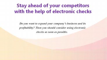 • Apart from that, e-checks offer many advantages