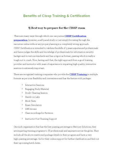 Title: Benefits of CISSP Training & Certification