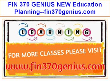 Title: FIN 370 GENIUS NEW Education Planning--fin370genius.com