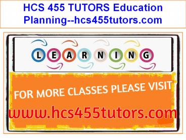 Title: HCS 455 TUTORS Education Planning--hcs455tutors.com