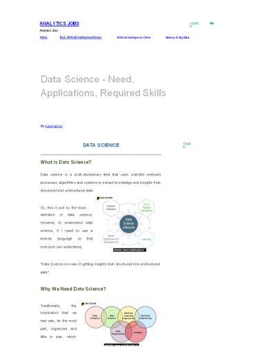 Title: Data Science - Need, Applications, Required Skills