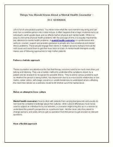 Title: Mental Health Counseling