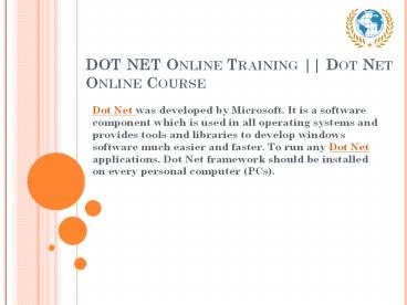 DOT NET Online Training Dot Net Online Course