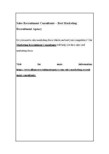Sales Recruitment Consultants : Best Marketing Recruitment Agency PowerPoint PPT Presentation