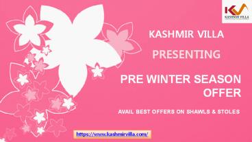 Now get a superior and genuine collection of Kashmiri products like Pashmina shawls, stoles, Aari work Saree, Salwar Suits, fresh dry fruits, pure Kashmiri saffron, mountain garlic’s, and many more products. More details visit at: . – PowerPoint PPT presentation