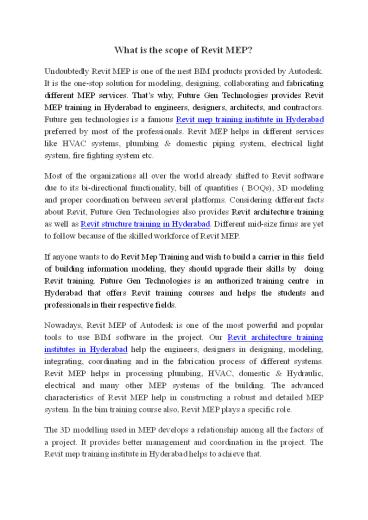 three dimensions, it is needed. - To understand the concepts with 2D Revit MEP