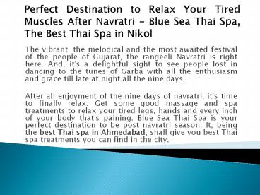 Perfect Destination to Relax Your Tired Muscles After Navratri PowerPoint PPT Presentation