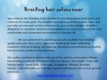Title: Braiding hair salons near Charlotte