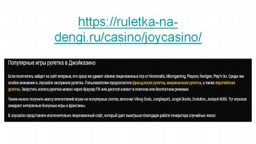 Рулетка онлайн и другие азартные игры в Joycasino PowerPoint PPT Presentation