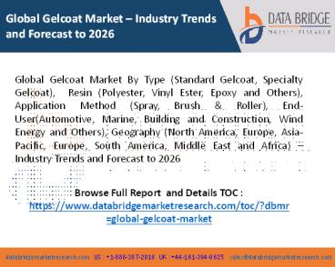 Global Gelcoat Market By Type (Standard Gelcoat,