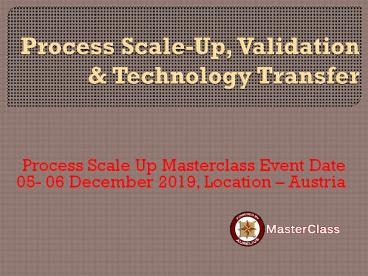 • Process Scale Up Masterclass Event Date 05- 06