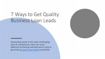 Title: 7 Ways to Get Quality Business Loan Leads
