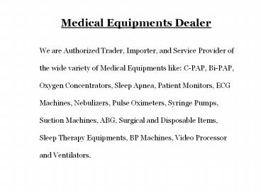 Medical Equipments Dealer and Service Provider in India PowerPoint PPT Presentation