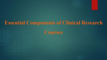 Essential Components of Clinical Research Courses PowerPoint PPT Presentation