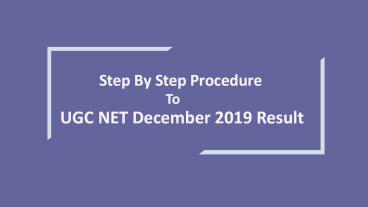 Download UGC NET December 2019 Result PowerPoint PPT Presentation