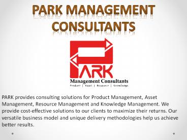 Title: Project Management - Park Management Consultants