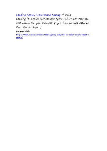 Leading Admin Recruitment Agency of India PowerPoint PPT Presentation
