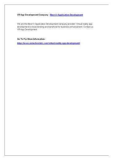 VR App Development Company - Best Vr Application Development PowerPoint PPT Presentation