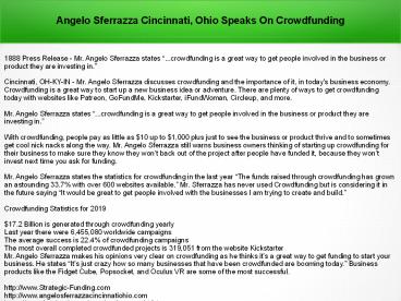 Title: Angelo Sferrazza Cincinnati, Ohio Speaks On Crowdfunding