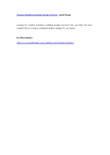 Creative Wedding Invitation Designs Services - Sprak Design PowerPoint PPT Presentation