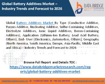 forecast period of 2019-2026. Battery additives