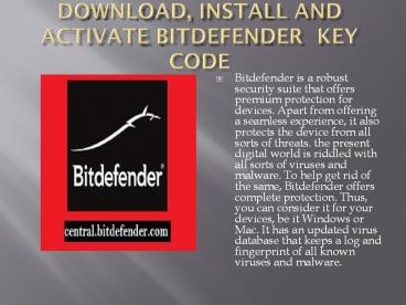 bitdefender.com/activate |DOWNLOAD AND ACTIVATE BITDEFENDER KEY CODE PowerPoint PPT Presentation