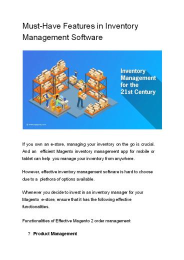 Must-Have Features In Inventory Management Software PowerPoint PPT Presentation