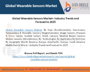 Title: Global Wearable Sensors Market– Industry Trends and Forecast to 2025