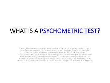 WHAT IS A PSYCHOMETRIC TEST? PowerPoint PPT Presentation