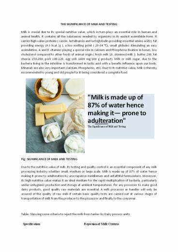 1THE SIGNIFICANCE OF MILK AND TESTING