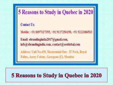 5 Reasons to Study in Quebec in 2020 PowerPoint PPT Presentation