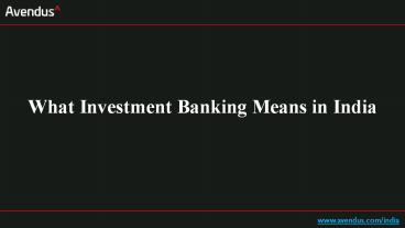 Title: What Investment Banking Means in India