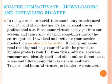 mcafee.com/activate - Downloading and Installing McAfee PowerPoint PPT Presentation