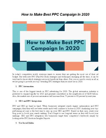 How to Make Best PPC Campaign In 2020 PowerPoint PPT Presentation